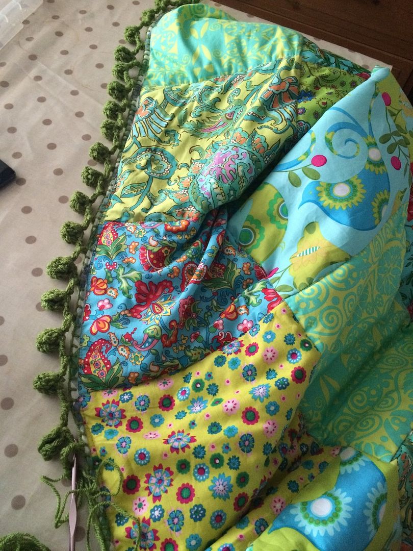 This is the basic quilt finished, and its optional if you want to start adding the crochet pom pom edgingPom Pom Edging